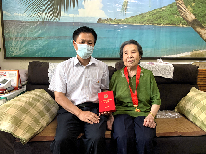 7月1日下午,在中國(guó)共產(chǎn)黨成立101周年之際,受北京化工集團(tuán)黨委委托,黨委副書記吳瑞峰帶隊(duì)來(lái)到離休干部孫華云家中,向她頒發(fā)“光榮在黨50年”紀(jì)念章。孫華云同志今年已91歲高齡,1946年9月1日參加工作,1972年7月1日入黨,是集團(tuán)原合纖廠工會(huì)干部。