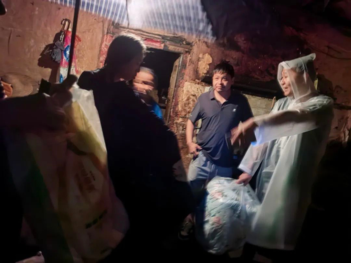 汛情就是命令。面對突如其來的洪水,本就日夜堅守在村委會的李東,與村委委員一起連夜趟著洪水,去多戶村民家中查看水位和房屋漏雨情況,在冒雨拉網(wǎng)式檢查中,李東和村委委員先后將2戶有安全隱患房屋內(nèi)的6名村民,連夜轉(zhuǎn)移至村委會臨時安置點。當大家要喘口氣歇歇腳兒時,28日凌晨3時許得到消息,位于村口的小商店出現(xiàn)險情,60多歲的老兩口被困店內(nèi)。接到消息,李東和村委委員緊急出發(fā)。由于洪水流速非常快,他們小心翼翼地扶著墻體前行。在到達商店后,此時洪水已經(jīng)淹沒房屋門檻灌入店內(nèi)。面對緊急情況,李東和村委會干部們?nèi)饩缺焕Ю先恕@顤|在前面小心探路,另外兩人護住老人,在大雨中最終將兩位老人撤離到安全地帶。